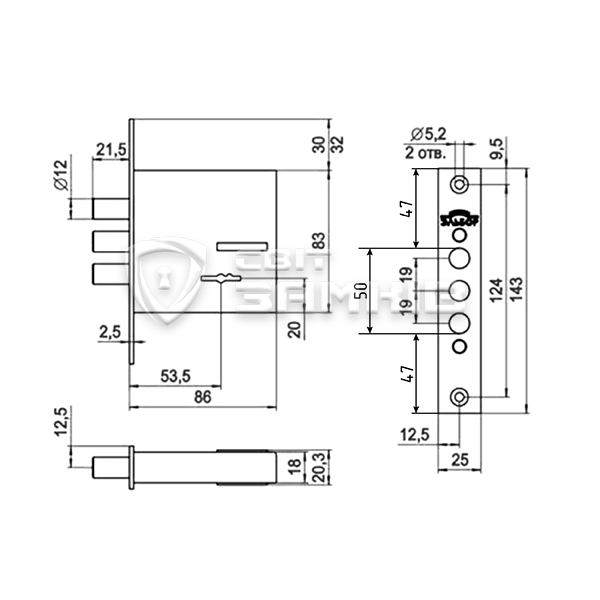 Описание Механизм замка ЕЛЬБОР Кремень 1.04.06 (BS53,5мм)