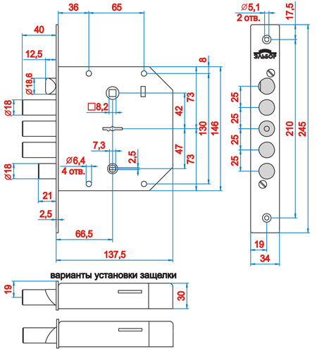 • Косой скос защищает от силового взлома методом забивания ригелей.
