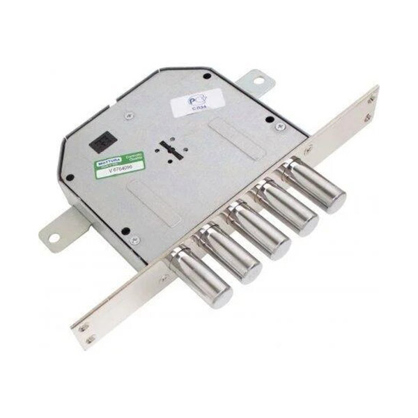 MOTTURA 50.798 - это 5-ти ригельный врезной, сувальдный замок. Данный замок предназначен для установки в металлические входные двери частного дома, гаража или складские двери. Корпус и крышка замка выполнены из стали. Механизм можно укомплектовать тягами, которые будут дополнительно закрывать дверное полотно по вертикали. Замок состоит из 6 сувальд, среди которых есть некоторые, не имеющие пружин, а также сам блок сувальд расположен ближе к внутренней части замка. Это затрудняет открывание отмычками. Также замок имеет защиту от вдавливания ригелей внутрь и высверливания. Ключи в данной модели с переменной кодировкой - имеют независимую левую и правую стороны, поскольку расстояние между противоположными зубцами меняется от позиции к позиции.