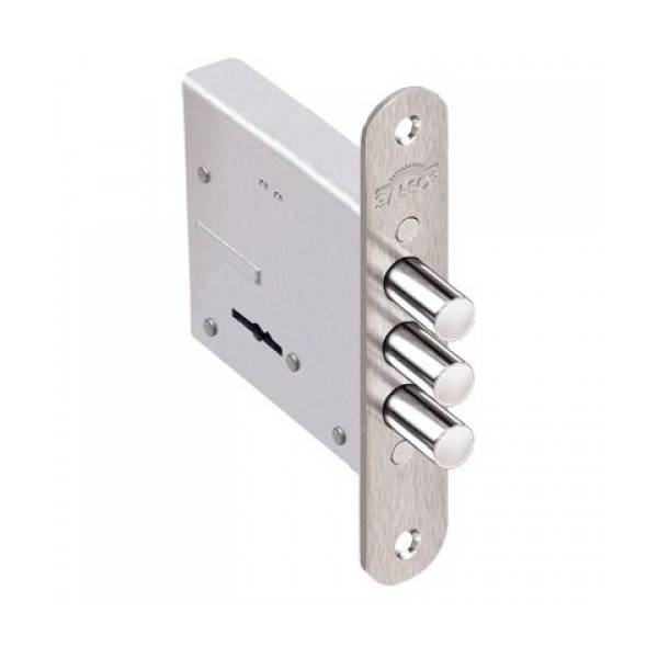 Классический дополнительный замок с управлением сувальдным ключом. Преимущественно устанавливают на металлические двери, реже на деревянные через его толщину. Обеспечивает надежное закрывание и усложняет отжим двери через увеличенную длину ригелей.