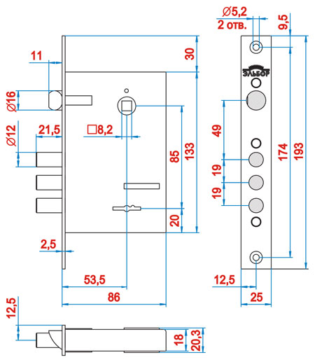Описание Механизм замка ЕЛЬБОР Rex 1.7 (BS53,5*85мм) (н)