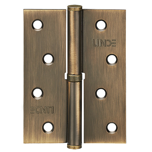Петля LINDE 100*75 мм на сегодня является одним из самых доступных и распространенных вариантов в своем классе. Этому способствует её простота, надежность и оптимальное соотношение цена/качество. Данная модель изготовлена ​​из высококачественной стали. Благодаря одному подшипнику ход дверей будет плавным. Наличие гальванического покрытия обеспечит износостойкость и сохранение первозданного вида. Важным аспектом при подборе петли являются габариты дверей. Основываясь на этом, вы очень просто определитесь с их необходимым количеством из расчета того, что нагрузка на одну из них должна быть не более 20 кг. Петля LINDE 100*75 мм подходит для входных и межкомнатных деревянных дверей с правой стороной открывания. Преимуществом данной модели является то, что снять дверное полотно можно без выкручивания петли. Например, чтобы занести в комнату габаритные вещи, Вы просто поднимаете двери вверх и половина петли снимается со штифта. В бронзовом цвете лучше будет дополнять двери с брашированной древесины с пыльно-землистой палитры. LINDE 100*75 мм монтируется путем наложения на дверное полотно в выфрезерованный паз. В комплекте поставляются саморезы для крепления.